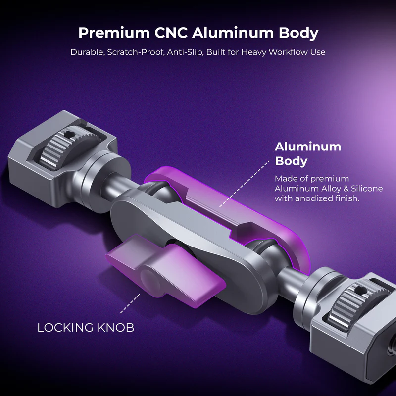 • Universal 1/4″ Screw Mount: Works with tripods, cages, suction cups, lights, monitors, and more.