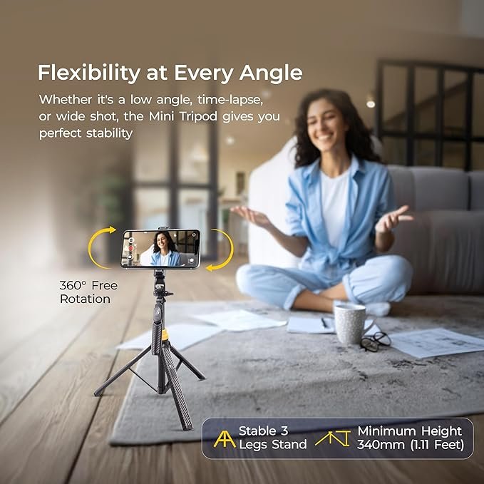 • Wireless Remote and 360° Ball Head: Includes a wireless remote with a 10-meter range, allowing you to capture photos and videos remotely. The 360° ball head ensures smooth panning and tilting, enabling shots from various angles with ease.