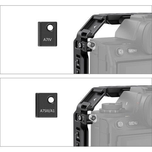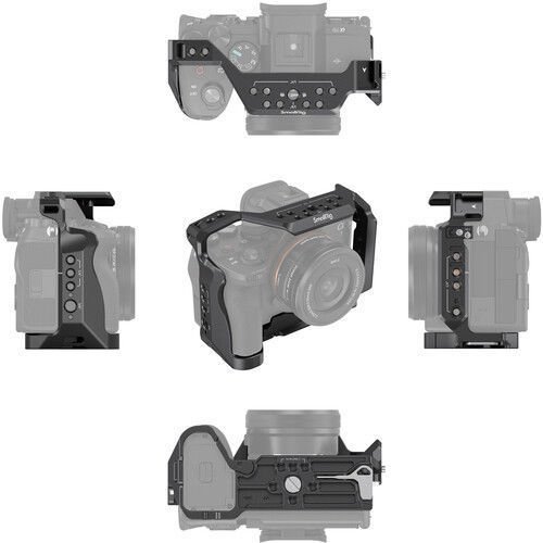 Add accessory mounting and protection for your Sony a1, a7 IV, or a7S III mirrorless camera with this lightweight Full Camera Cage from SmallRig. The camera mounts onto this formfitting aluminum cage with an integrated 1/4″-20 screw, it incorporates an anti-twist design using two locking side plates, and it has padding on the base to protect the camera from scratching. It maintains access to the camera’s controls and hot shoe and features a variety of mounting options.